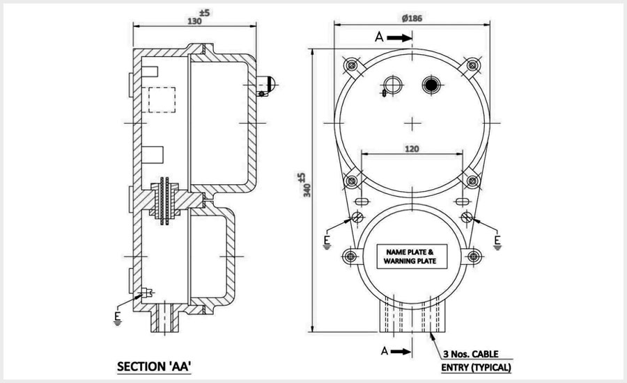 | Cable Entry | 02 Nos. for M20 ( 3/4” ET) |